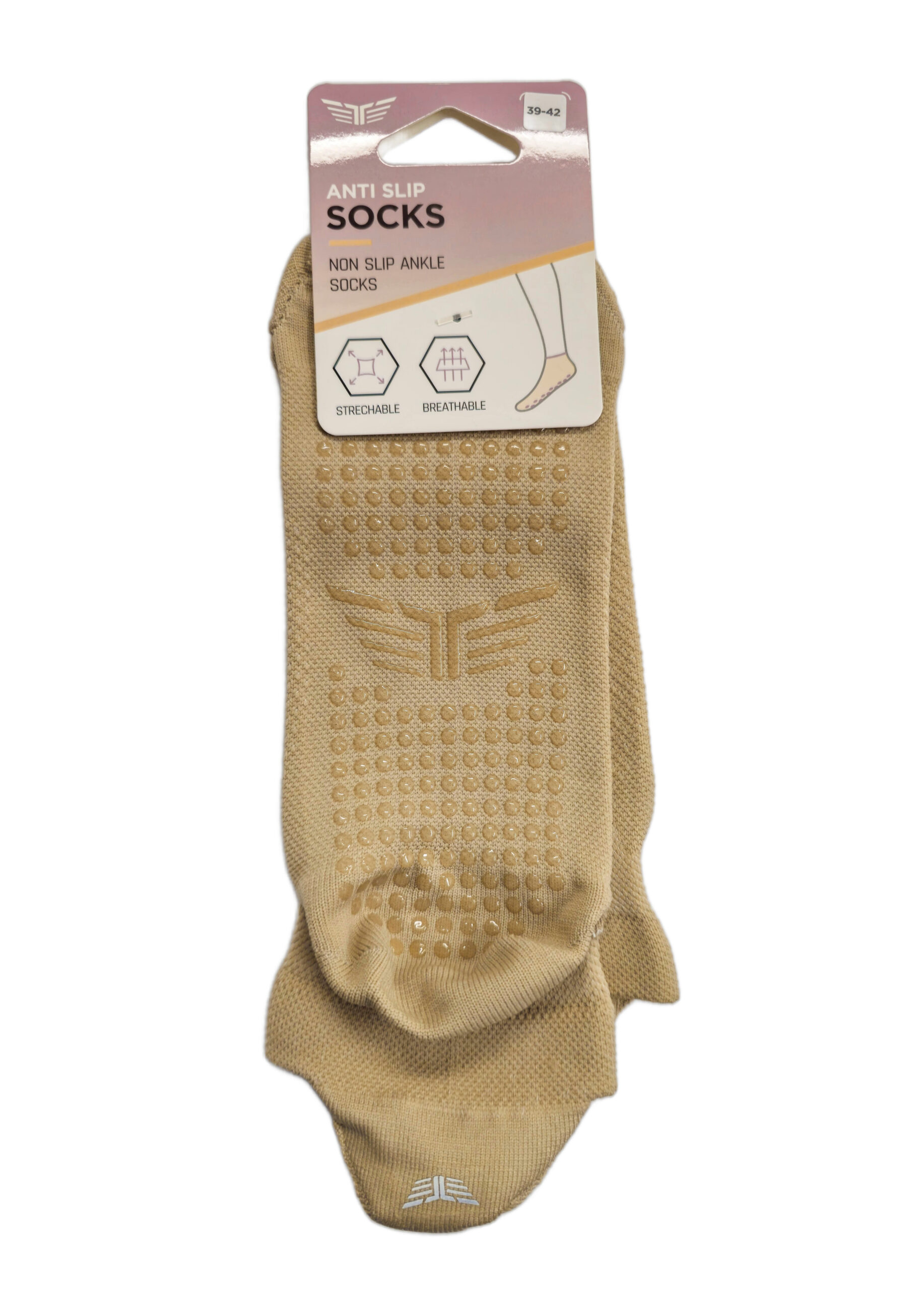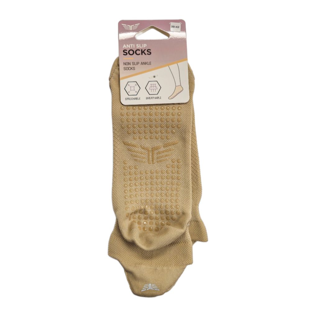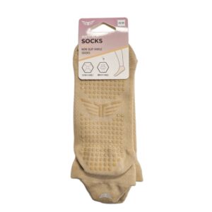 Ženske protizdrsne nogavice so namenjene vadbi, kot sta pilates in joga, kjer sta stabilnost in dober oprijem bistvenega pomena. Na spodnjem delu imajo posebne silikonske nedrseče elemente, ki izboljšajo stik s podlago in zmanjšujejo možnost zdrsa na gladkih površinah.